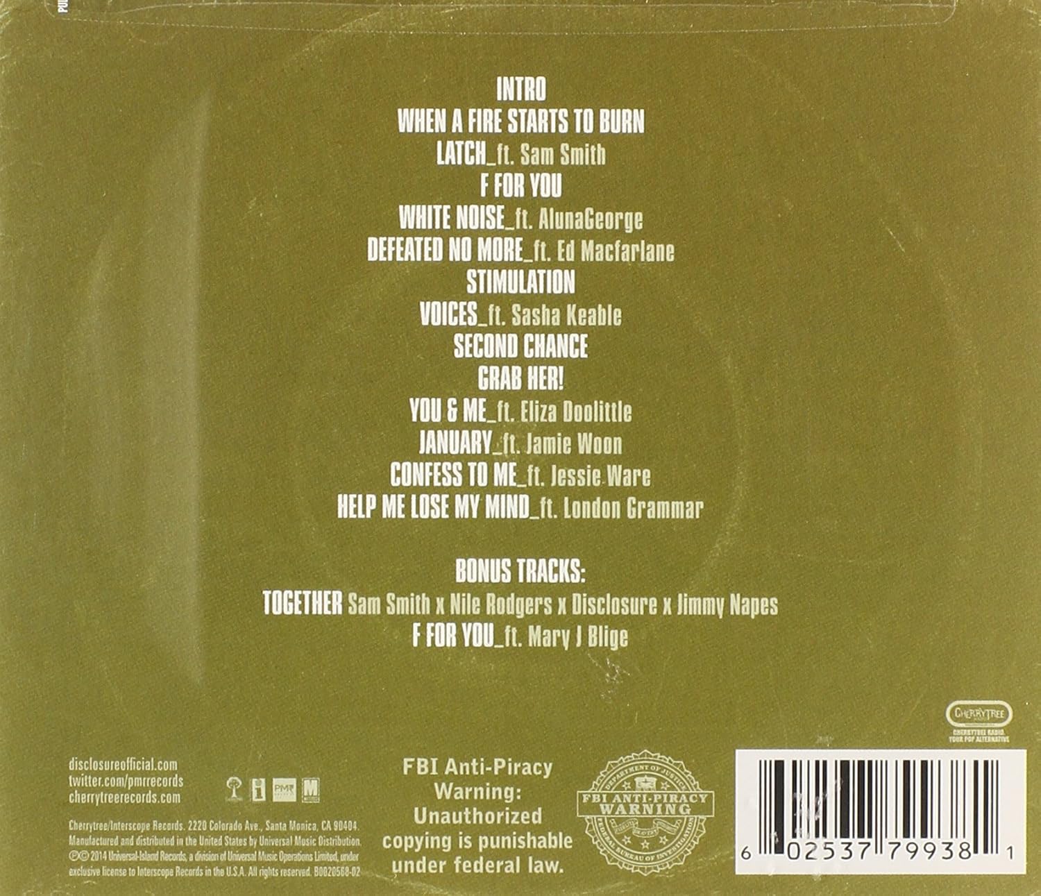 Disclosure – Click For: Disclosure – Settle Track list: 01. When a Fire Starts to Burn 03. Sam Smith) 04. F for You 05. White Noise (feat. AlunaGeorge) 06. Defeated No More (feat.