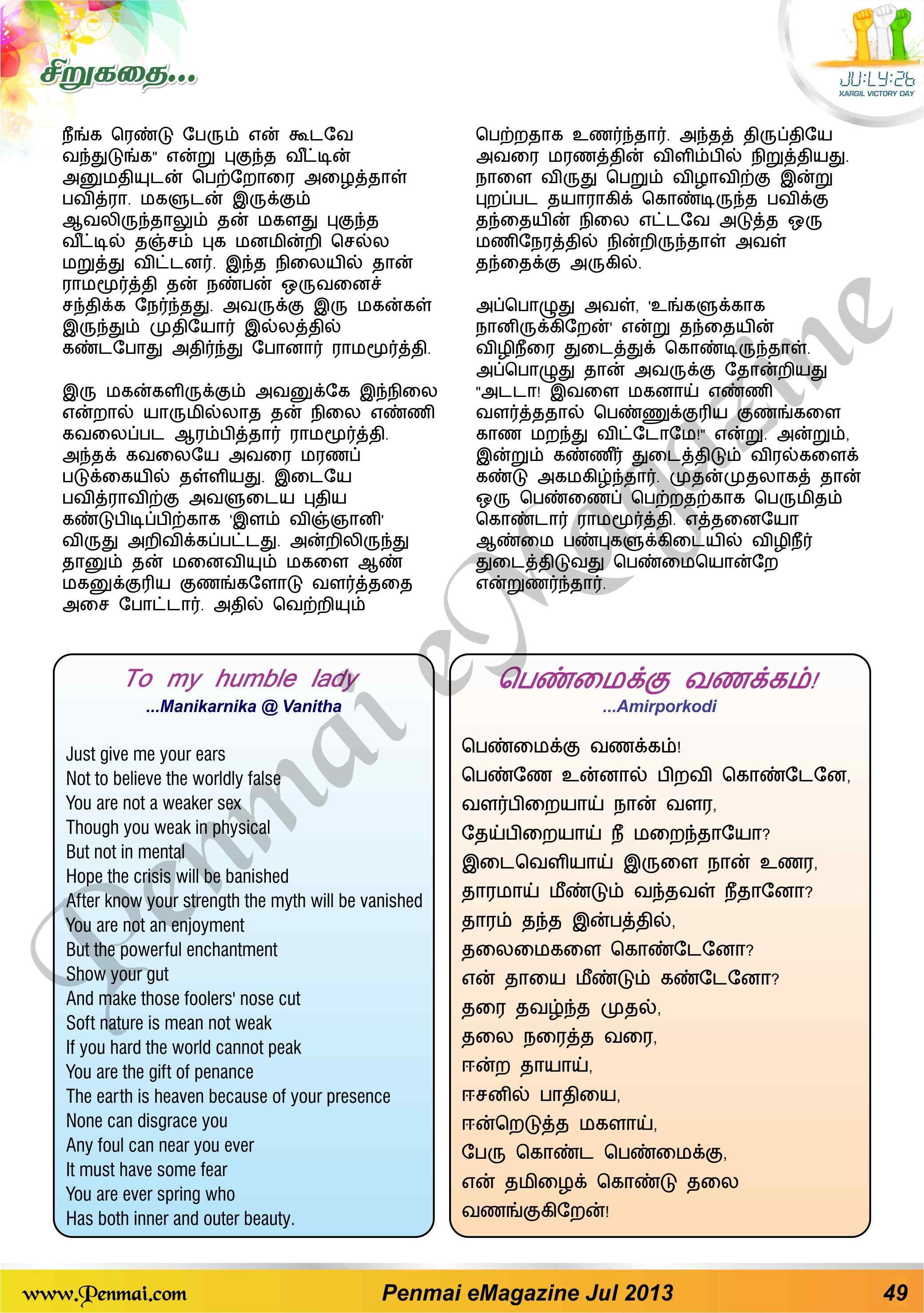 - Latest:Niralya's 1st story 'வாழ்க்கை படகு'Deepalakshmi,Jun 24, 2018